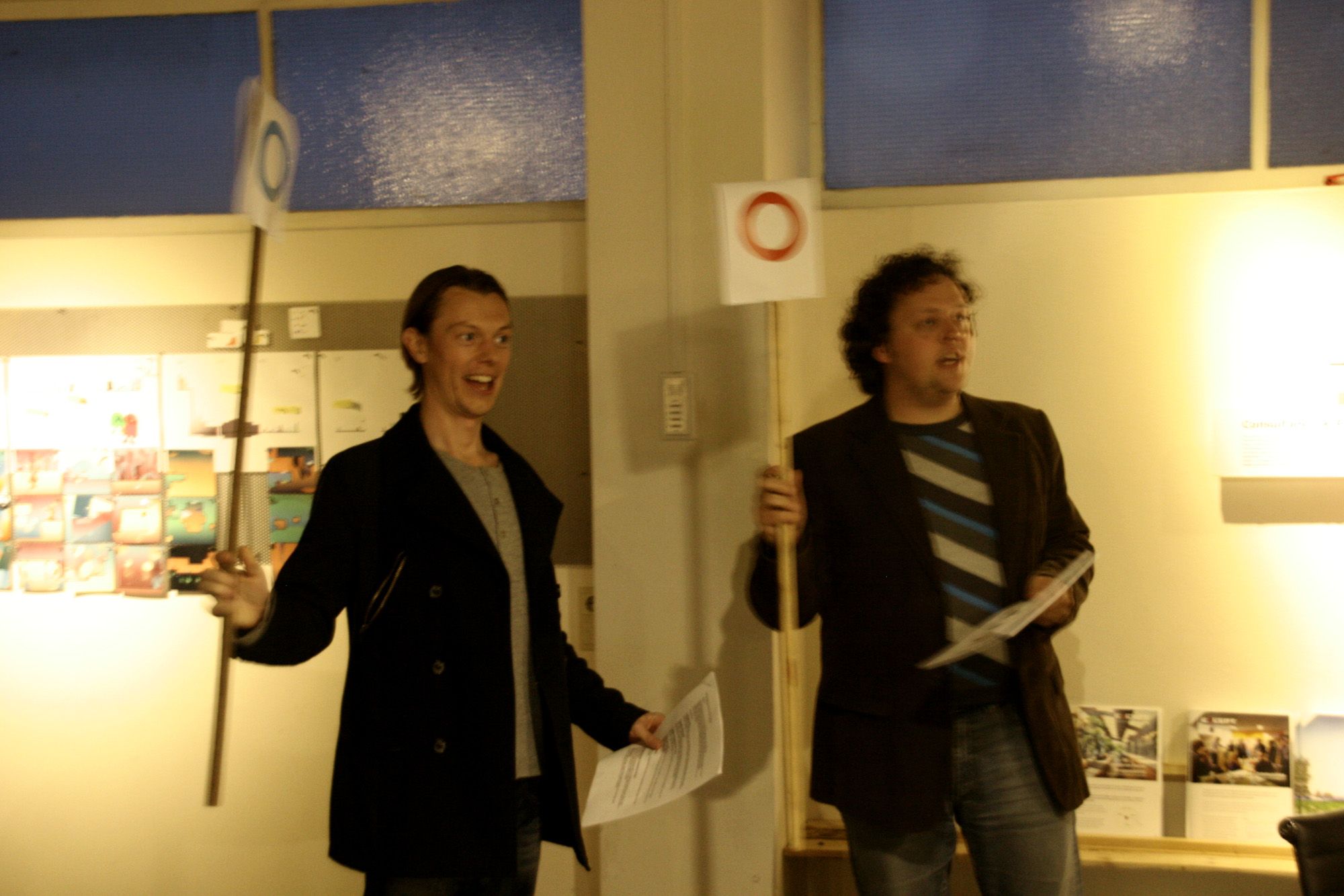 By flowing through dedicated places on the square, corresponding to answers on questions relating to flows and by tracking these places on a map everybody drew their own flow map. Afterwards people could check their answers and I am sad to say the there was no one with a 100% score. But it was a lot of fun anyway so a good score on that aspect.