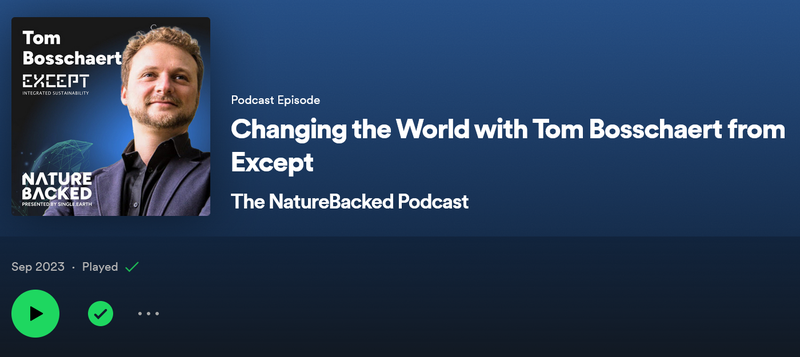 The NatureBacked Podcast: Here, Tom reveals how Except is transforming to initiate long-term societal transformations. He emphasizes the urgency of action, outlining five key intervention points in society for a snowball effect transition. These include the financial sector, agriculture, the built environment, manufacturing, and education. Tune in to the episode.