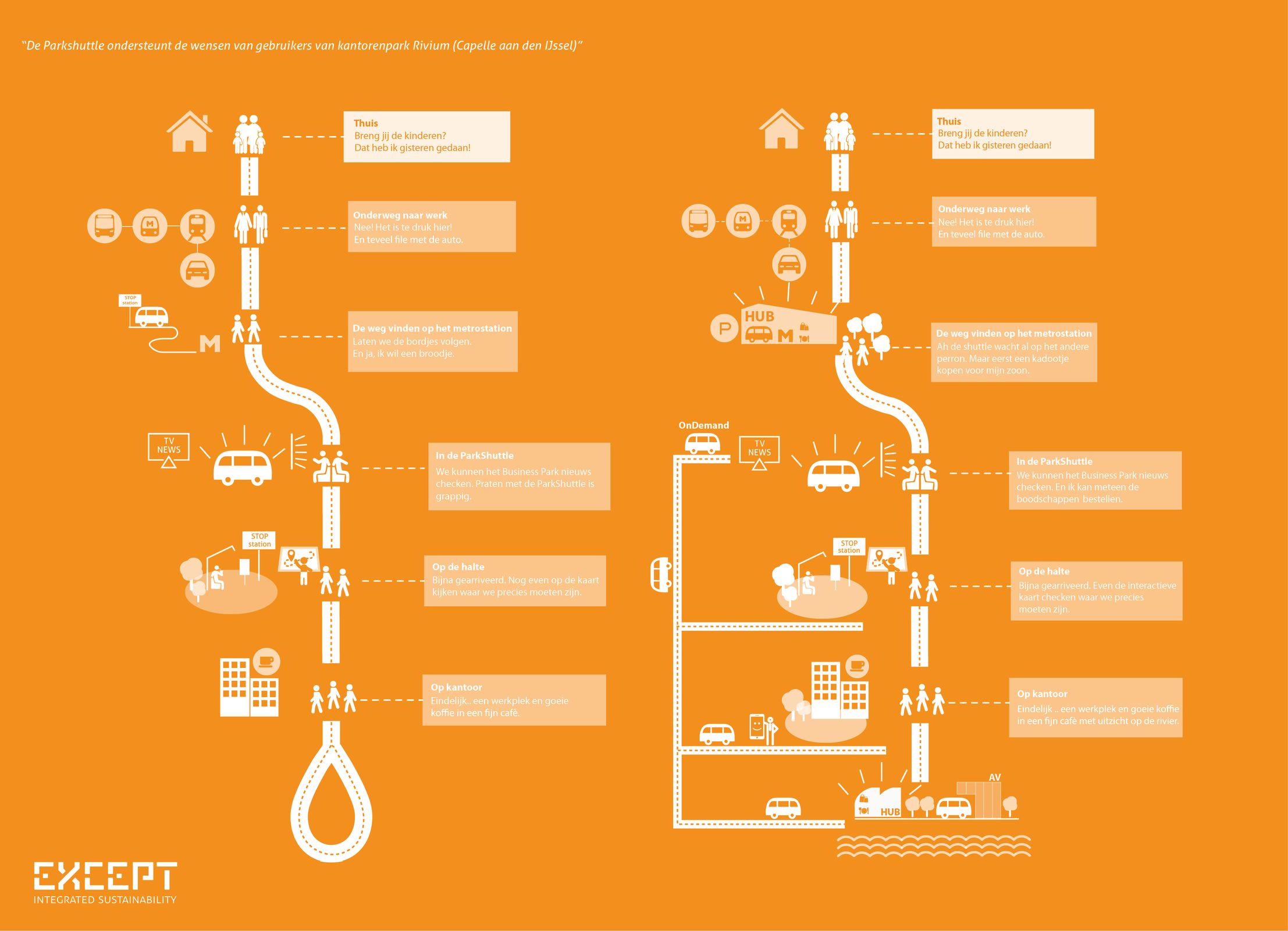 Met zelfrijdende shuttlebussen in Nederland is al vijftien jaar ervaring opgebouwd: de Parkshuttle op het kantorenpark Rivium in Capelle aan den IJssel. Except stelde de mensen aan boord van de shuttles dezelfde vragen als bij het eerste gebruikersonderzoek in 2000. De uitkomst van de enquête wijst op een goed functionerend systeem dat op vrijwel alle aspecten beter voldoet dan tijdens het initiële dienstjaar. Hij wordt beoordeeld als betrouwbaar, frequent en redelijk comfortabel. Men voelt zich prettig in de voertuigjes en er zijn geen klachten over (sociale) onveiligheid.
