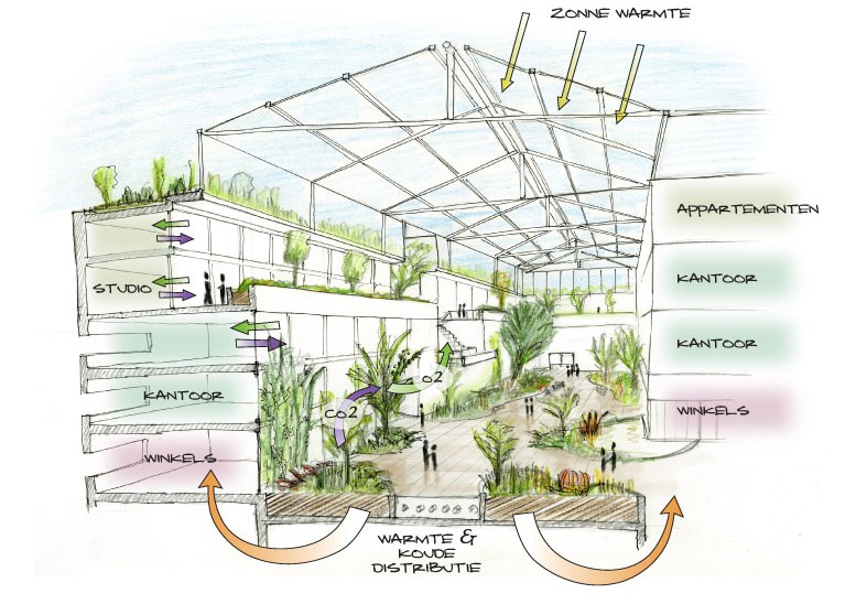 Gebruikmakende van oplossingen die verschillende functies combineren wordt het geheel efficienter en compacter. Slimme systemen bewegen mee met toekomstige veranderingen in demografie, markt, techniek en cultuur, en gebruiken ecologische systemen in hun voordeel.