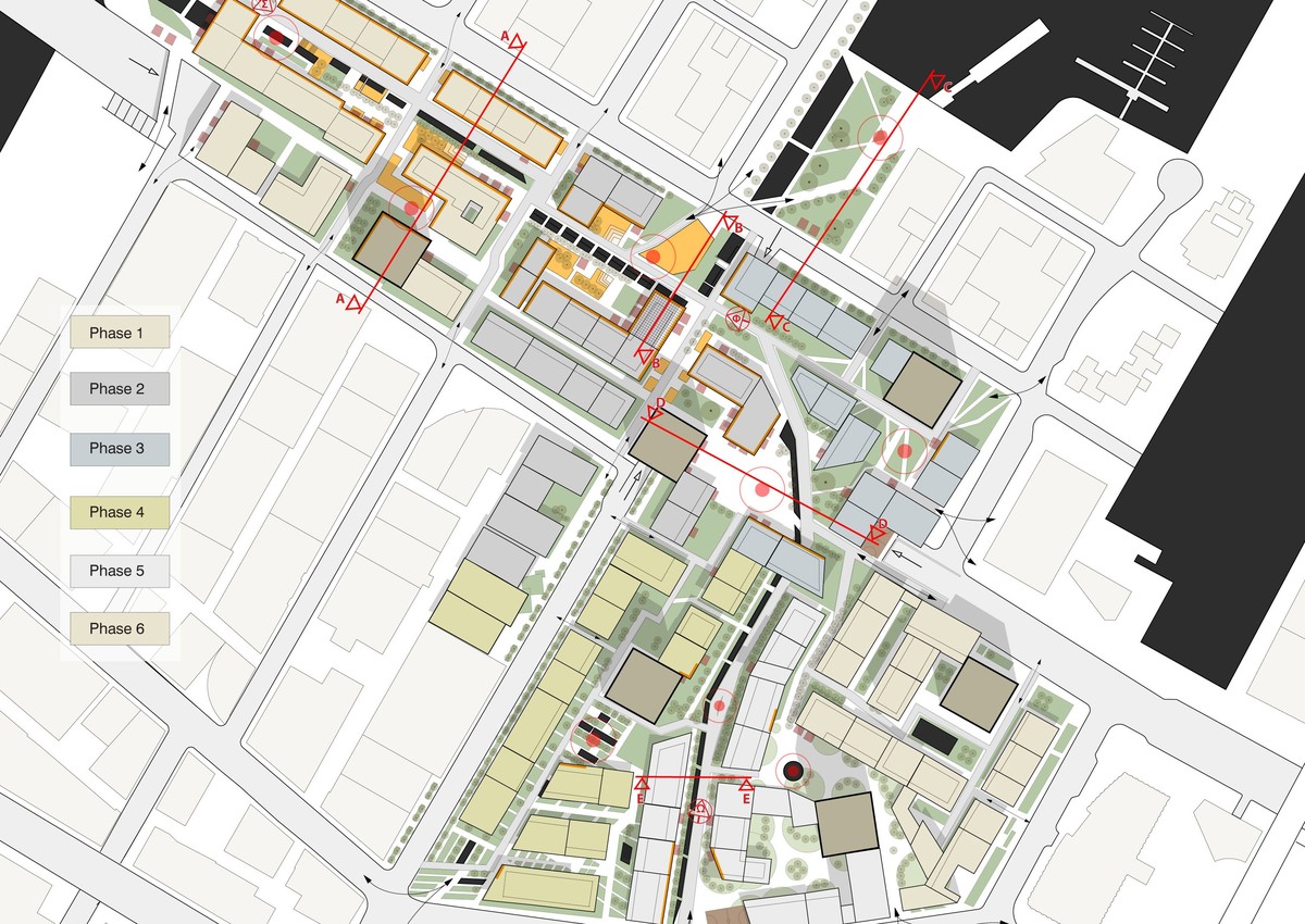The phasing of the project is carried out in stages relating to each single-tower community. Each phase has many occupants, buildings, and retail spaces, to function in isolation from others. When finalized, the individual steps form a region that is more than the sum of their parts by ensuring shared spaces, environments, and organizational structures.
