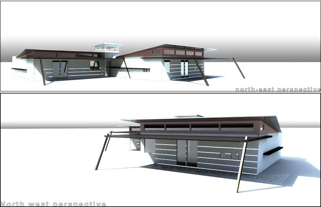 Designed in 2001, this house was beyond its time in providing an affordable, sustainable habitat that could be aggregated in various patterns in a new suburb of Kalgoorlie, Western Australia. Drawing on traditional moorish and middle-eastern architectural types, the house features a wind tower that helps to extract hot air from the house in a natural way. The orientation towards the sun, passive solar principles, use of geothermal and solar energy provide all the cooling, heating and electricity for the house, make it a very sustainable design before its time, while remaining affordable, and with unique architectural qualities. The house does not have a specific site, and is largely pre-fabricated construction.