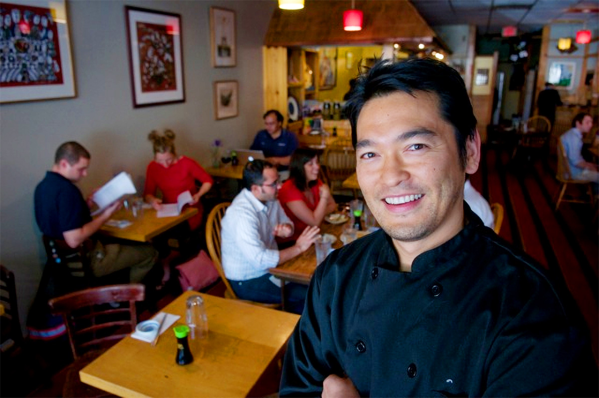 Chef Bun Lai in his restaurant Miya's, in New Haven, Connecticut, USA